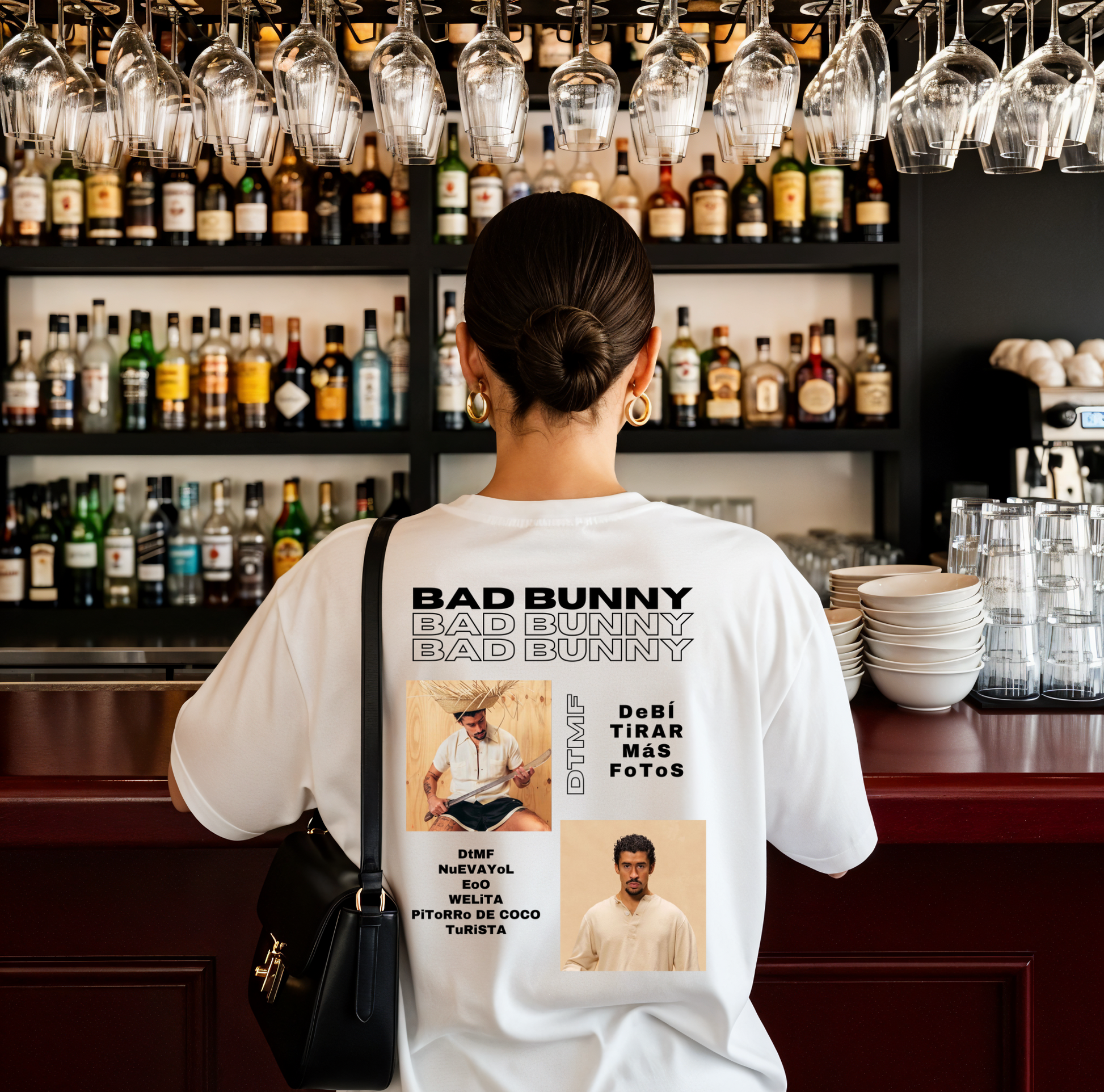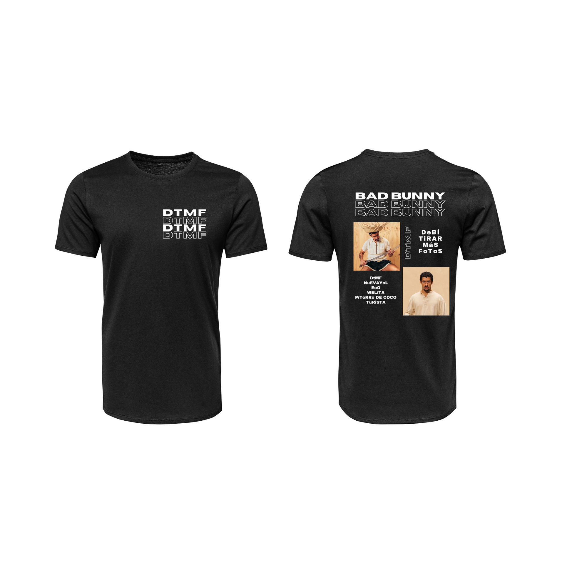 This DtMf T-shirt, available in black or white, features a unique design inspired by reggaeton legend Bad Bunny. Made for both men and women, this comfortable unisex t-shirt is perfect for fans of the artist and makes a bold fashion statement.