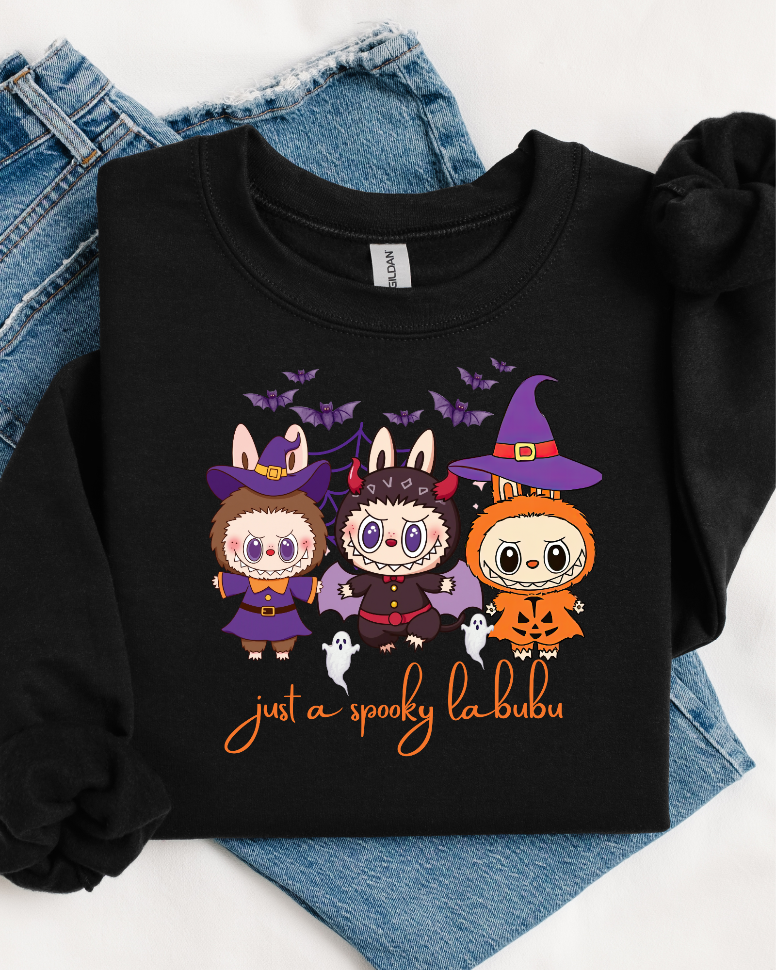Bring on the boos with our Just a Spooky LaBubu design β a cute and playful Halloween must-have for anyone who loves a little spooky charm! Featuring adorable LaBubu characters dressed in their Halloween best, this design adds the perfect touch of fun to your fall wardrobe.